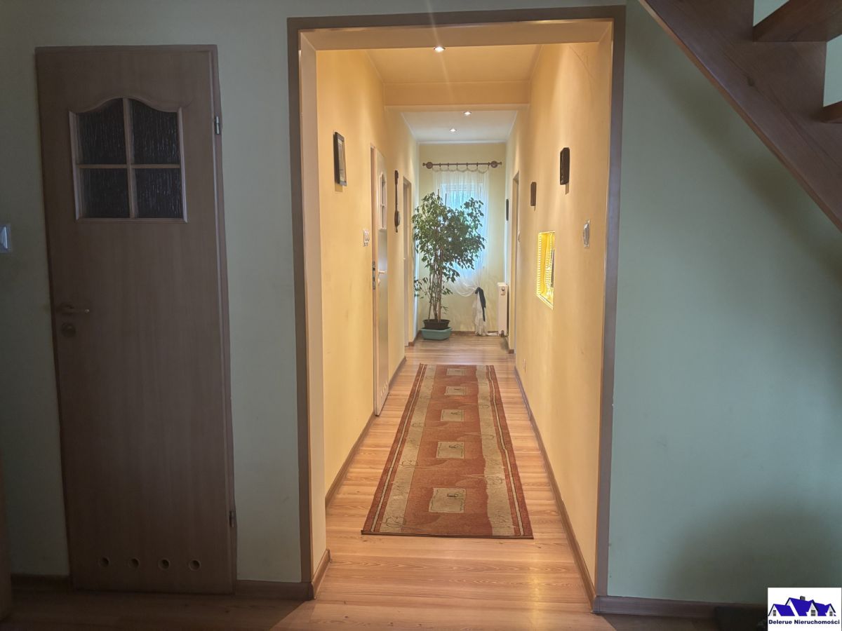 Dom o wymiarach front 14m x 9m, oddany do użytku w 2008 roku o powierzchni całkowitej około 200 m2. użytkowej 146,20 m2. Ściany zewnętrzne bloczki gazobetonowe 24 cm na zaprawie cementowo- wapiennej, styropian 15 cm pokryty tynkiem mineralnym. Strop drewniany ocieplony wełną mineralną 18 cm. Podłogi termoizolacja styropian 5 cm. Okna PCV dwuszybowe. w kolorze białym. Dach pokryty blachodachówką. Ogrzewanie piec na drewno w kotłowni oraz kominek w salonie. Kuchnia i łazienki podłoga płytki ceramiczne, w pokojach panele podłogowe. Ściany wewnętrzne tynki cementowo - wapienne.